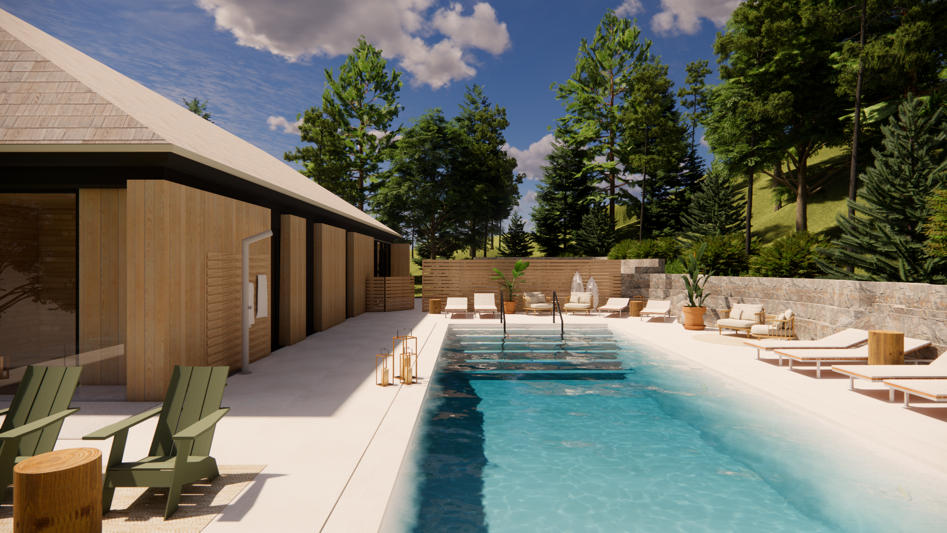 Les finis de bois pâle et de pierre naturelle ont été pensés pour s’harmoniser à la nature qui vous entoure. Votre unité ne fera donc qu’un avec la forêt environnante.